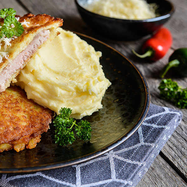 Ветчина, картофель, лук, сыр, морковь, соль, специи